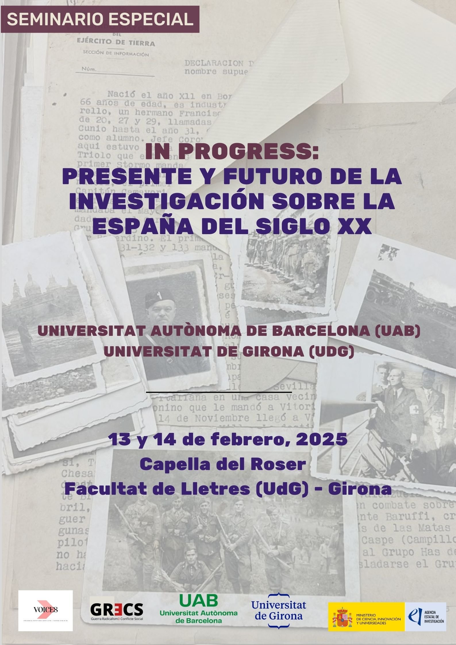 El próximo seminario de la Red VOICES (Violencia, Identidad y Conflicto en la España del Siglo XX) se celebrará en Girona los días 13 y 14 de febrero.