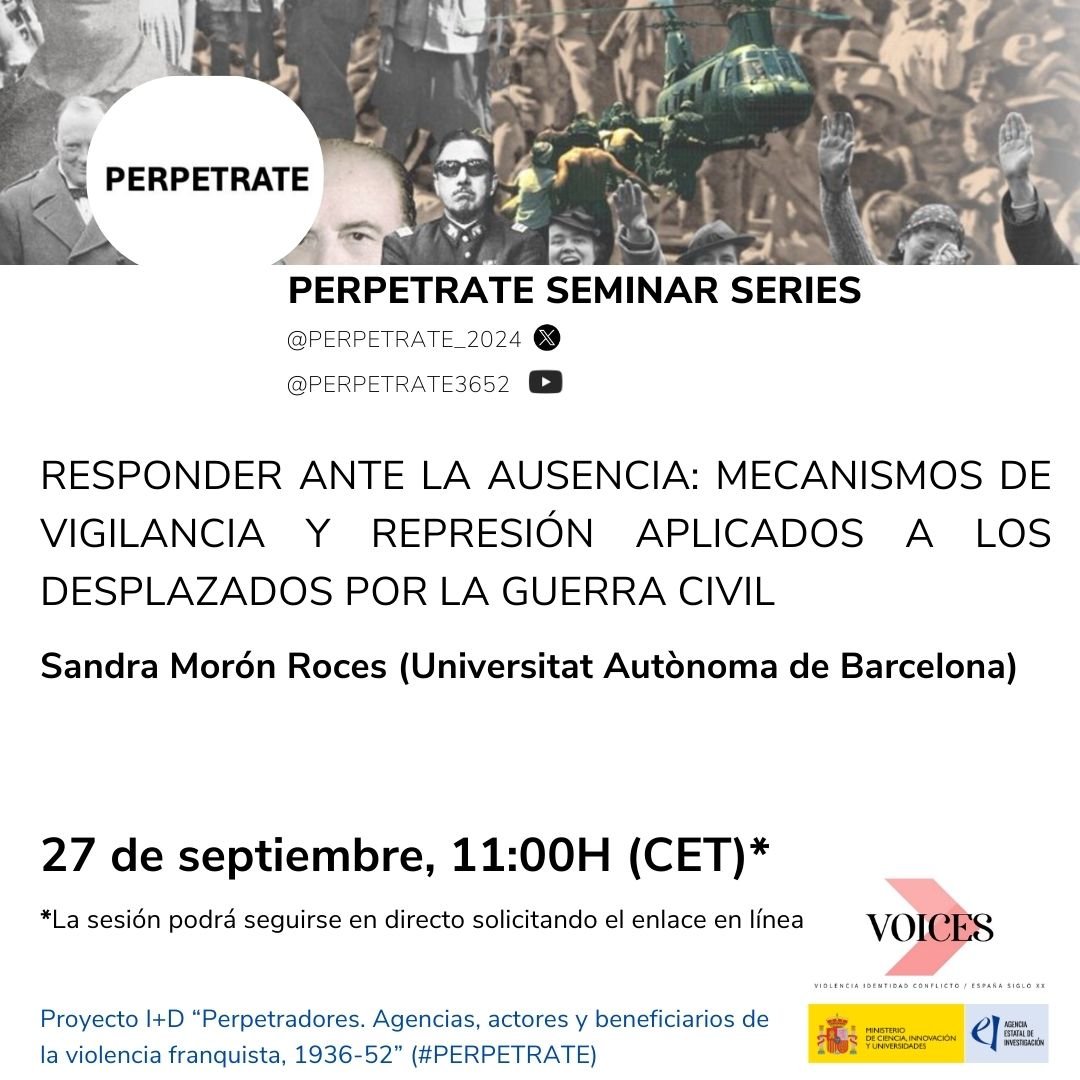Seminario PERPETRATE: Sandra Morón (UAB) sobre los mecanismos de vigilancia y represión sobre los refugiados en la guerra civil
