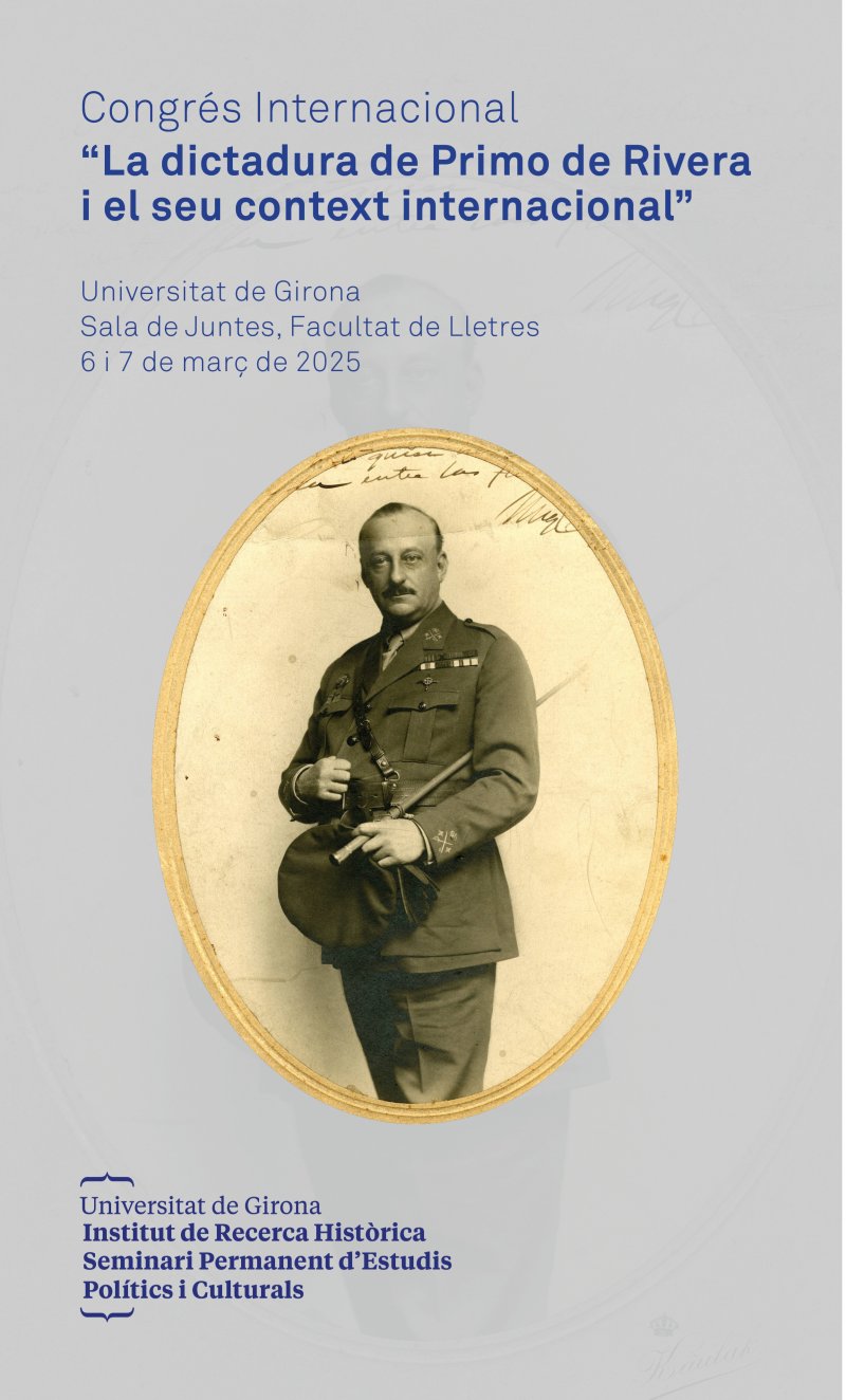 Este congreso forma parte de las actividades del proyecto de investigación «España, la primera posguerra, la dictadura de Primo de Rivera y sus articulaciones con Italia, Portugal y Argentina» (PID2020- 112800GB-C22), del grupo de investigación consolidado Guerra, Radicalisme Politic i Conflicte Social (GRECS) y de la red «Violencia, Identidad y Conflicto en la España del Siglo XX» (VOICES). Esta actividad se ha realizado con el apoyo del Departamento de Historia e Historia del Arte de la Universitat de Girona y del Seminari Permanent d'Estudis Polítics i Culturals de l'Institut de Recerca Històrica.
