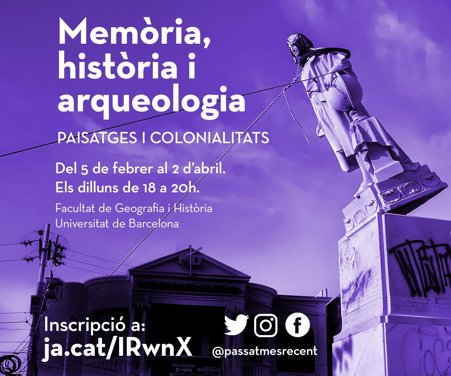 Del 5 de febrero al 2 de abril los lunes de 18 a 20h contaremos con varios académicos que trabajan en los campos que atraviesan la memoria, la arqueología y la historia del pasado contemporáneo El curso ha sido organizado y dirigido por la Dra. Queralt Solé y Dra. Laia Gallego Vila, en el marco del equipo del Passat Més Recent (UB), del proyecto NECROPOL: Más allá del subtierro. Del giro forense a la necropolítica en las exhumaciones de fosas comunes de la Guerra Civil (Proyecto I+D+I PID2019-104418RB-I00),del Grup d’Investigació Consolidat Centre d’Estudis Històrics Internacionals (2021 SGR 01079, UB) de...